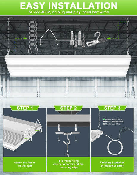 LED Linear High Bay Light - LHB Series,300W,45000lumens,5000K,277-480V
