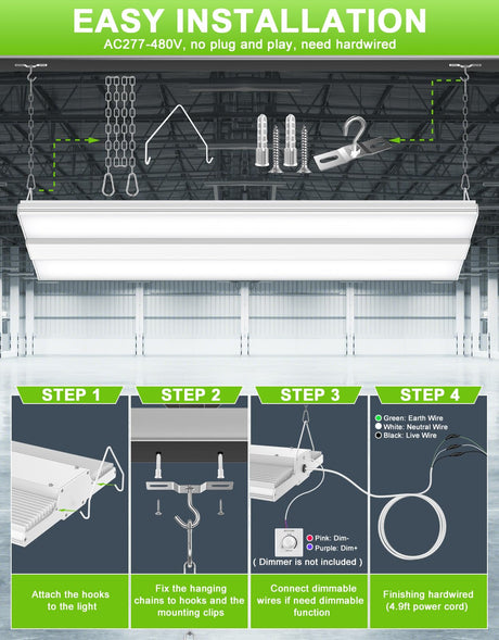 LED Linear High Bay Light - LHB Series,300W,45000lumens,Selectable Wattage & CCT,277-480V