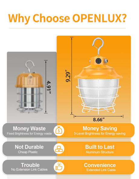 LED Temporary Work Light- PTL Series,100W,15000lumens,Selectable Wattage& CCT,AC120V,ON/Off Button