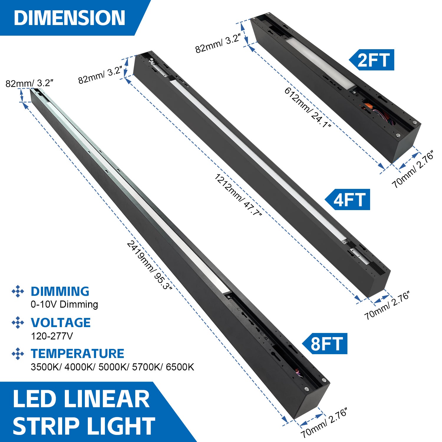 LED Architectual Light - LST Series,50W,6500lumens,Selectable Wattage & CCT,100-277V,4FT,4 Pack - 50W/40W/35W/30W/25W / 3500K/4000K/5000K/5700K/6500K / 4-Pack is backordered and will ship as soon as it is back in stock.