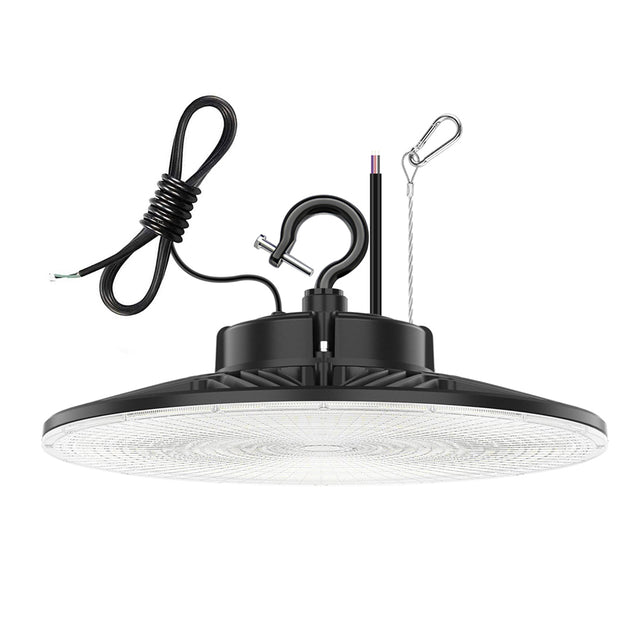 The 200W LED High Bay Light delivers 30000 lumens of bright 5000K daylight with wide 100–277V compatibility. Built with SMD3030 LED chips delivering up to 150LM/W, this fixture cuts energy costs by over 50% compared to traditional HID or MH lamps while providing bright, even light output.