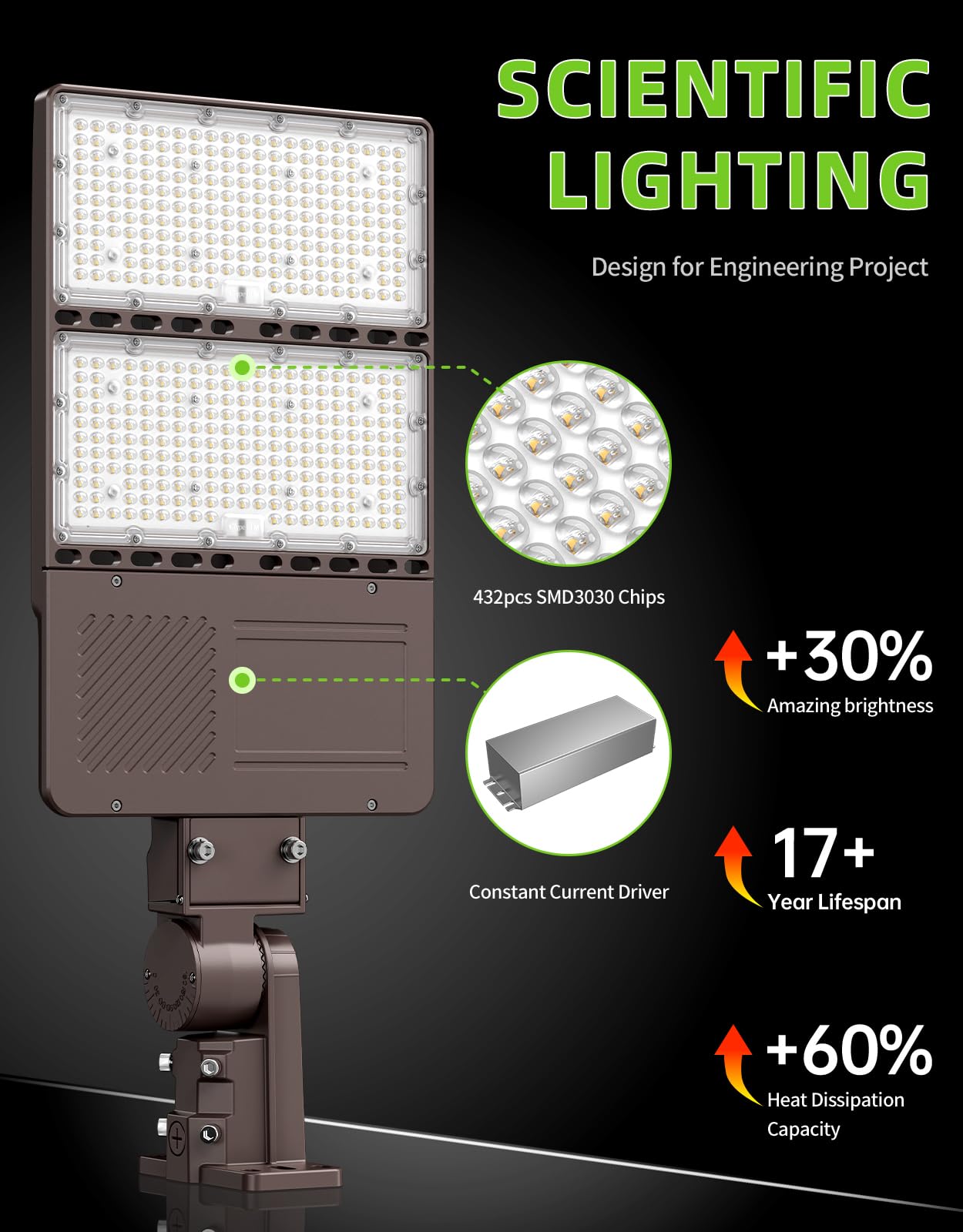 - [ Durable & Long Lifespan ] - LED commercial pole Shoebox light made of Industrial grade die-casting aluminum, SMD 3030 LED chips, brand driver, and Smart heat dissipation design, After tens of thousands of testing to ensure 50,000 hours of lifespan