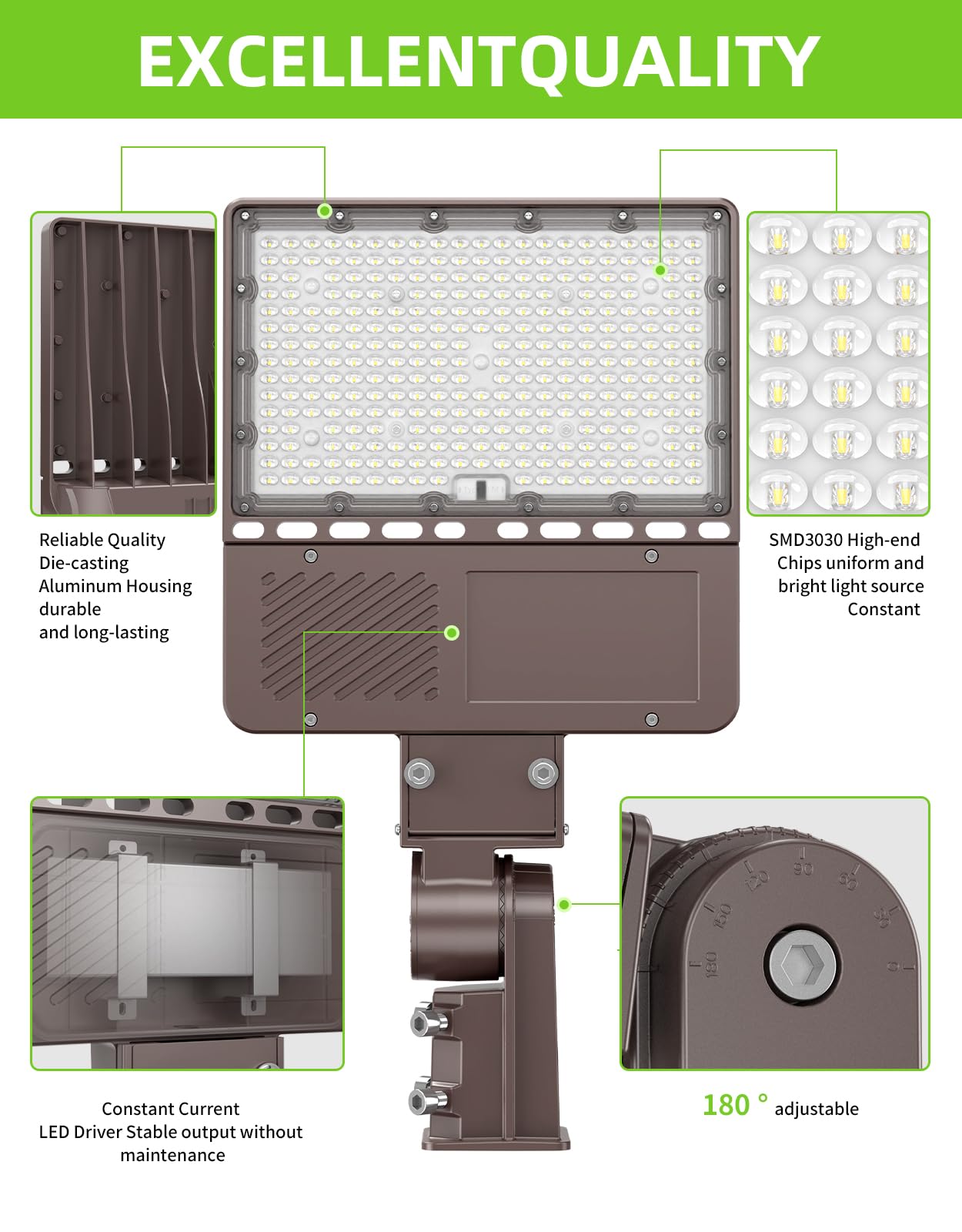 - Extra Bright, Quality & Saving - AC277-480V 150W 22500LM parking lot lights with SMD3030 quality chips offer 150LM/W high efficient. Saving 85% electric bill