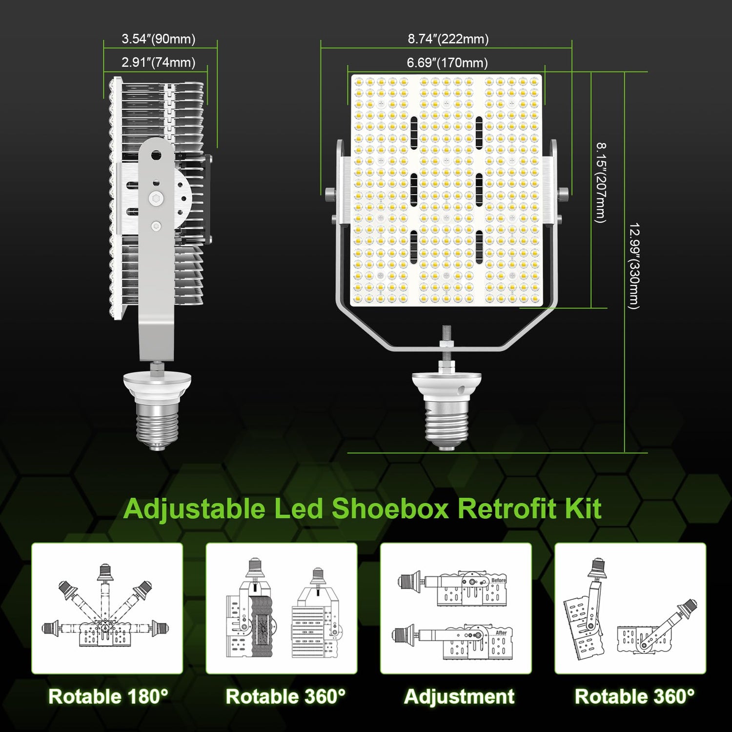 - Wide Application: Shoebox LED retrofit kit is perfect for retrofitting ceiling lights, wall packs, parking lot pole lights, shoebox lights for tennis courts, and many other fixtures. The best solution for commercial and Industrial equivalent