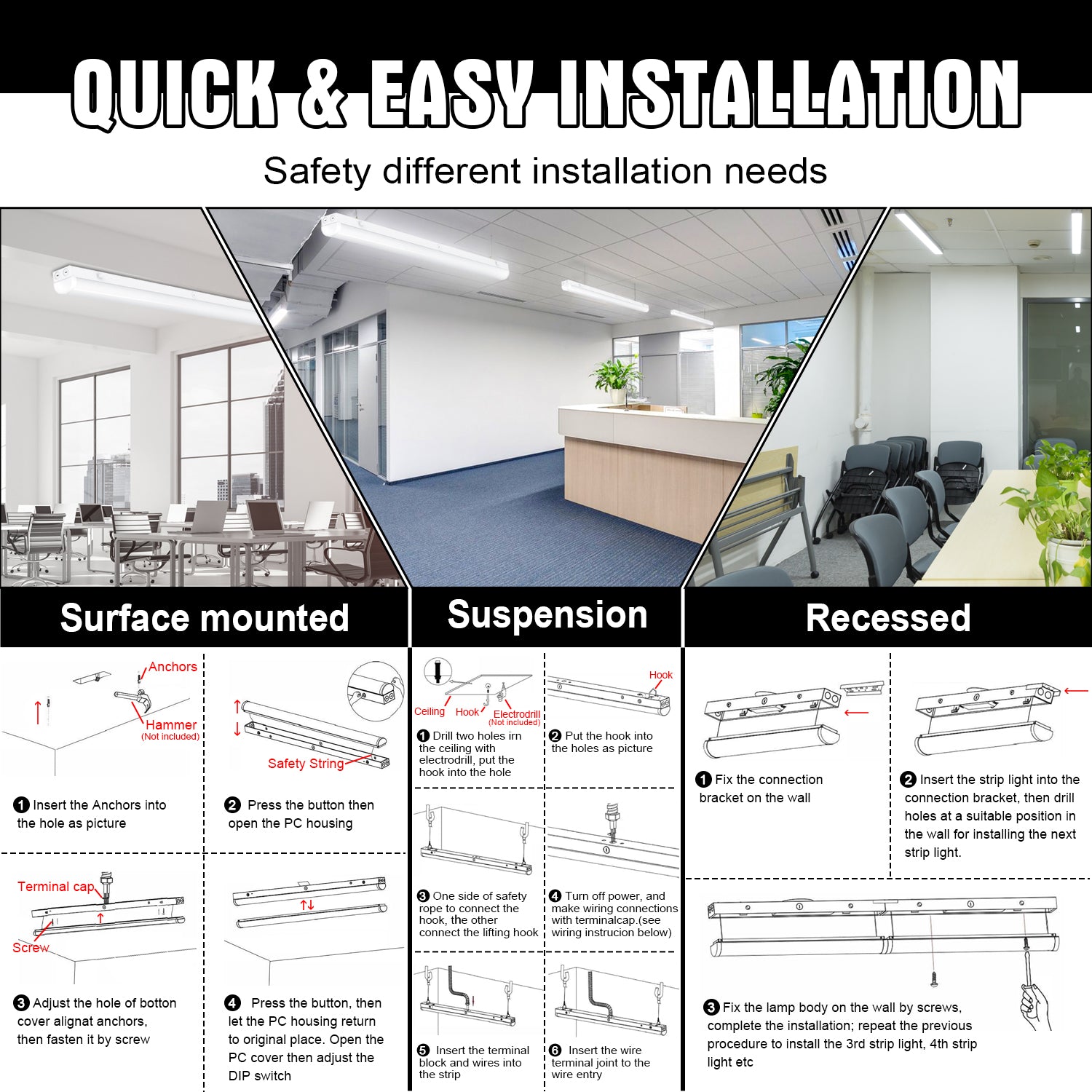 LED Strip Light - STL Series,100W,14000lumens,Selectable Wattage & CCT,120-277V,8FT,4 Pack,WITH AUDIO JACK SENSOR BASE - 100W/90W/80W/60W/40W / 6500K/5700K/5000K/4000K/3500K / 4-Pack is backordered and will ship as soon as it is back in stock.